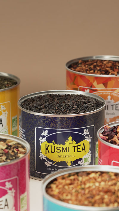 Das Teehaus Kusmi Tea, Die in der Normandie hergestellte französische Marke pflegt seit 1867 die Tradition des Bio-Tees. Geleitet von Leidenschaft und der Suche nach permanenter Innovation, Kusmi Tea ist zu einer weltweiten Referenz im Verkauf von geworden loser Tee und Teebeutel, vonBio-Aufgüsse und Kräutertees und von Boxen zum Tee. Natürlicher Tee oder aromatisierter Tee, japanischer Tee, chinesischer Tee oder sogar indischer Tee, grüner Tee, schwarzer Tee, weißer Tee, matcha, rooibos oder maté…bei uns werden Sie bestimmt fündig!